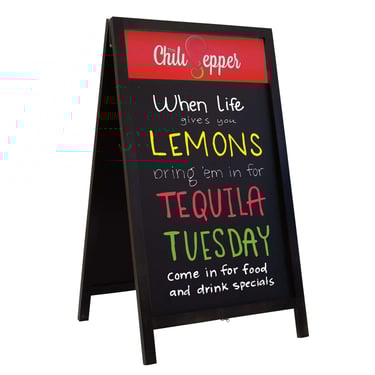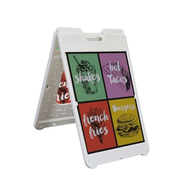 Portable, durable, and highly effective, A-frame signs (also known as sandwich board signs) are a go-to solution for businesses that need flexible advertising. Perfect for sidewalks, storefronts, restaurants, real estate, and event promotions, these signs grab the attention of foot traffic and guide customers right to your door. Easy to set up, move, and update with interchangeable graphics, A-frame signs are a cost-effective way to promote specials, showcase menus, or highlight important information—all while reinforcing your brand in a bold, eye-catching way.