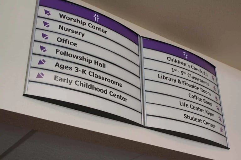 We create custom indoor signs designed to meet the unique needs of your space while enhancing functionality and style. Whether you're in need of wayfinding signs, lobby signs, directory signs, ADA-compliant signage, or directional signage, we’ve got the perfect solution. Our indoor signs include: